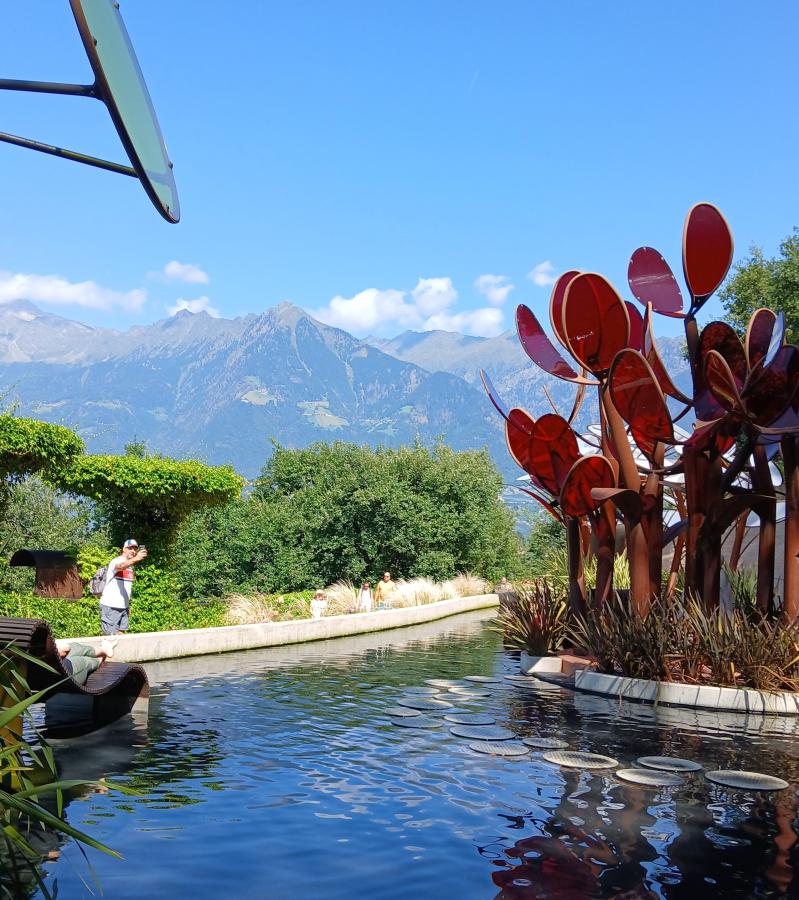 Pusryčiai. Vykstame į Meraną. Tai antras pagal dydį Bolcano provincijos miestas, įsikūręs slėnyje, o iš rytų ir šiaurės apsuptas didingų kalnagūbrių, kurių aukštis siekia 3335 metrus. Dėl kalnų įtakos Merane susiformavo labai malonus mikroklimatas. Ne veltui čia buvo įkurtas vienas gražiausių Italijoje botanikos parkų prie Trautmansdorfo pilies*. Ši pilis buvo mėgstamiausia Austrijos imperatorės Elžbietos vieta, dėl jos ir išgarsėjo Merano kurortinis miestas. Botanikos parke yra keletą apžvalgų aikštelių, iš kurių atsiveria nuostabi Trautmansdorfo pilies panorama Alpių pašonėje. Parke yra palmių pliažas, papūgų paviljonas, baseinas su japoniškais karpiais ir baseino saloje esančiais gultais,kuriuose galime pailsėti, kavinėje išgeri puodelį itališkos kavos. Pilies ir sodų lankymas. Vykstame į Merano terminius baseinus*. Plaukiosime šiltame baseine ir mėgausimės vaizdu į kalnus ir mėlyną dangų. Kas neis į terminius baseinus, galės pasivaikščioti savarankiškai po Merano senamiestį. Po maudynių vykstame į vyno degustaciją. Vykstame link viešbučio. Nakvynė viešbutyje Austrijoje.